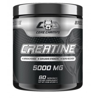 CORE CHAMPS Creatine Monohydrate is 100% pure, flavorless, micronized creatine monohydrate with no fillers or additives. Creatine is a naturally occurring molecule in the body that plays a key role in explosive energy metabolism. It helps to drive periods of short burst power output; like the first few reps in a set, or the explosive drive from the starting blocks. During exercise, intramuscular stores of creatine reload ATP molecules, the “energy machines of muscle”, for last between-set recovery. Unfortunately, the creatine produced by the body is available only in limited supply. Supplementing with CORE CHAMPS Creatine Monohydrate helps to supersaturate muscles with rapid-fueling creatine – improved muscle power, explosive strength, and rapid recovery.